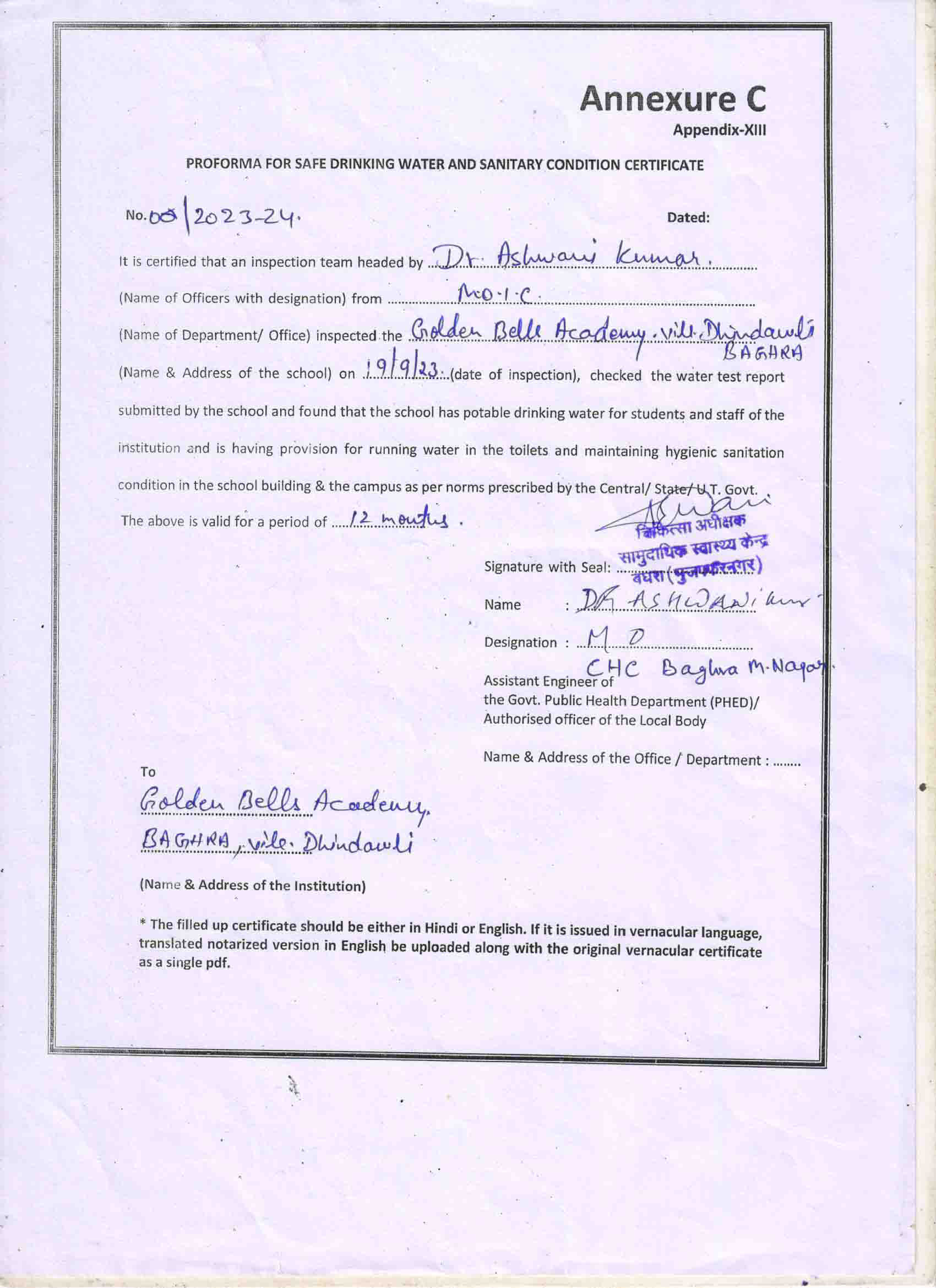 CBSE Affiliation Letter